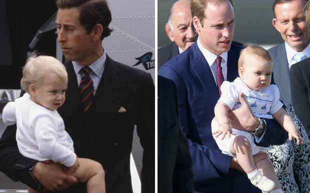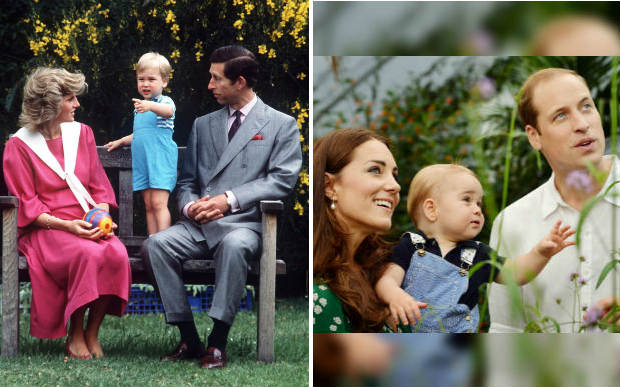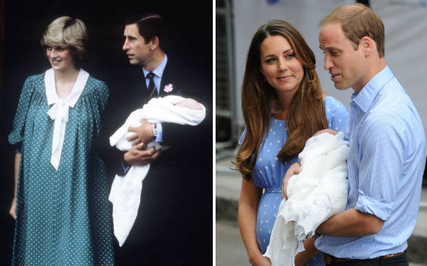 Desde que nasceu, Baby George veio ao mundo fazendo referência ao pai. Kate Middleton e William se vestiram quase igual à Diana e ao Príncipe Charles no nascimento do primeiro herdeiro.