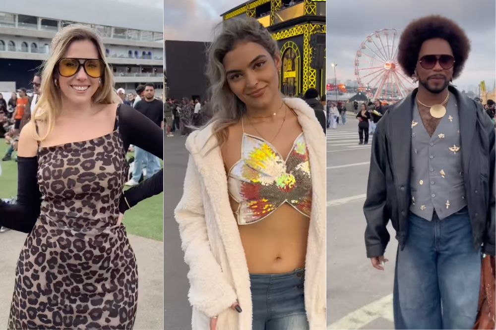 Os penteados também foram criativos, com coques, tranças e rabos de cavalo, alguns estilizados com presilhas, outros com brilhos, sempre dando um toque ainda mais descolado aos looks. A seguir, confira os melhores visuais que encontramos pelo gramado do festival: