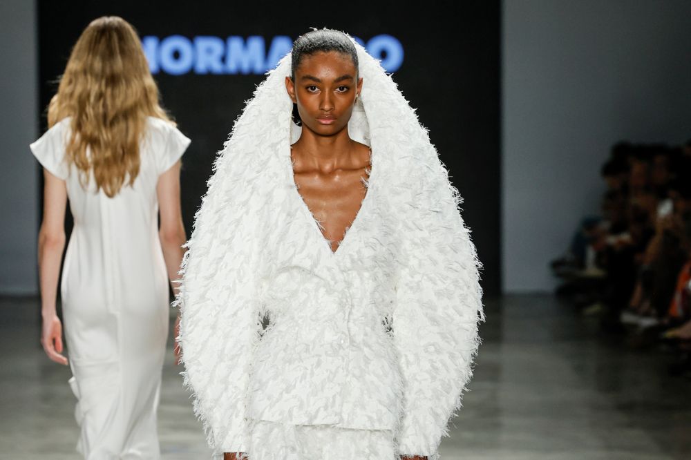 om terceiro desfile consecutivo na edição N60 do São Paulo Fashion Week, a marca Normando apresentou, nesta sexta-feira (17), o seu desfile Mito ou Fauna, com 44 looks imponentes, tanto masculinos quanto femininos, que referenciam a mitologia amazônica, como a Cobra Grande, o Mapinguari e a Rasga Mortalha. Mais uma vez, os diretores criativos Marco Normando e Emídio Contente dão evidência à linguagem simbólica e material da sua origem amazônica.