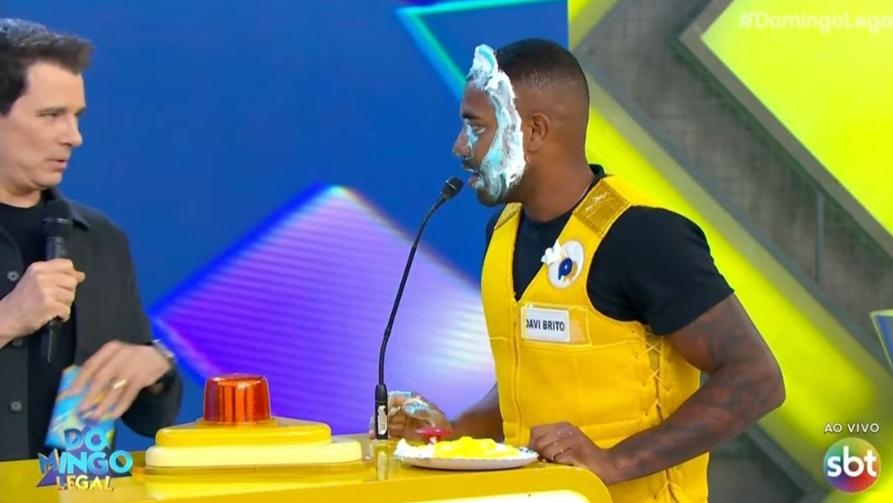 Campeão do BBB 24 levou tortada na cara em programa do SBT após responder errado.